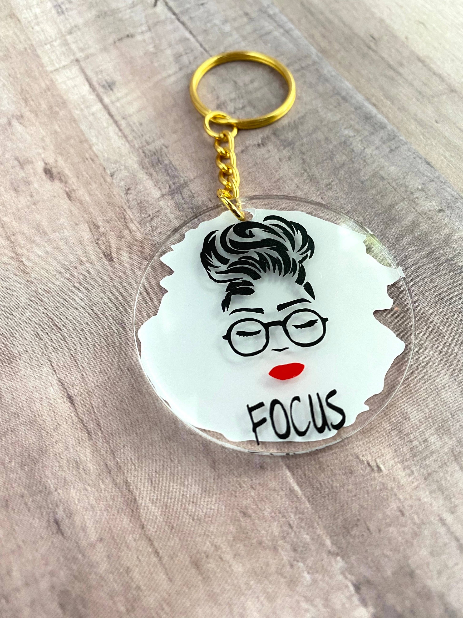 A daily reminder to stay focused! These 2" lightweight acrylic keychains are handmade with eye-catching colors and striking designs. Allowing you to easily adorn and identify your keys.