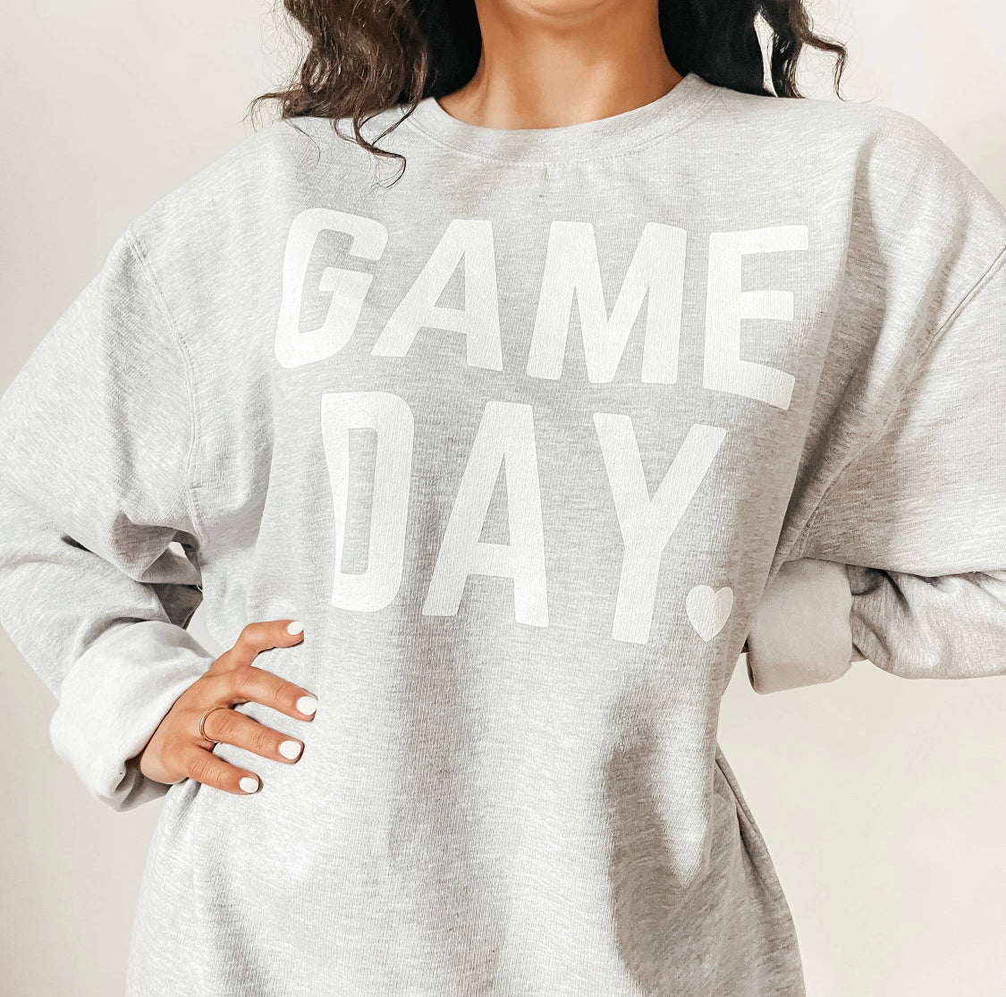 GAME DAY!! Football season is here and we've got the coziest crew neck sweatshirt for you! Unisex sixing but runs a little generous. Material is Poly/Cotton so minimal shrinking will occur in a high heat dryer. This sweatshirt is good quality with a fleece inner lining and is screen printed.