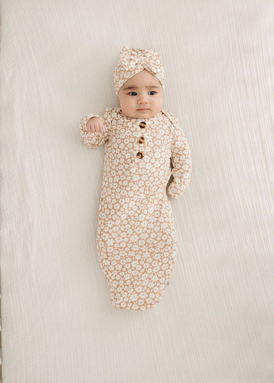Mocha Ditzy Floral Knotted Gown + Hat